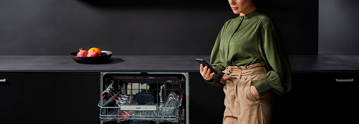 Povežite svoju perilicu posuđa s AEG aplikacijom za pristup dodatnim značajkama, kao što su savjeti o održivosti i podsjetnici za održavanje.