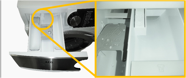 Slika prikazuje ručku odvojenu od ladice za deterdžent.