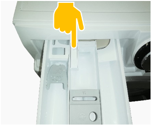 Otvorite ladicu za deterdžent. Ulov (označen nazivom „PUSH“) bit će vidljiv na lijevoj strani.