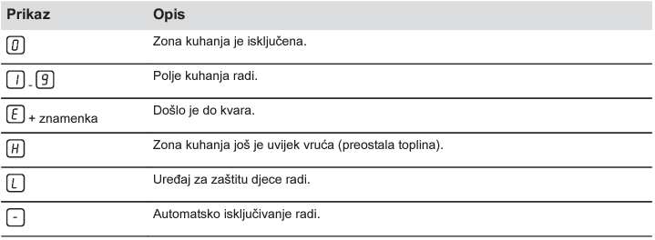 - Ploča za kuhanje / štednjak prikazuje poruku H. To je obično znak zaostale topline u zoni kuhanja.